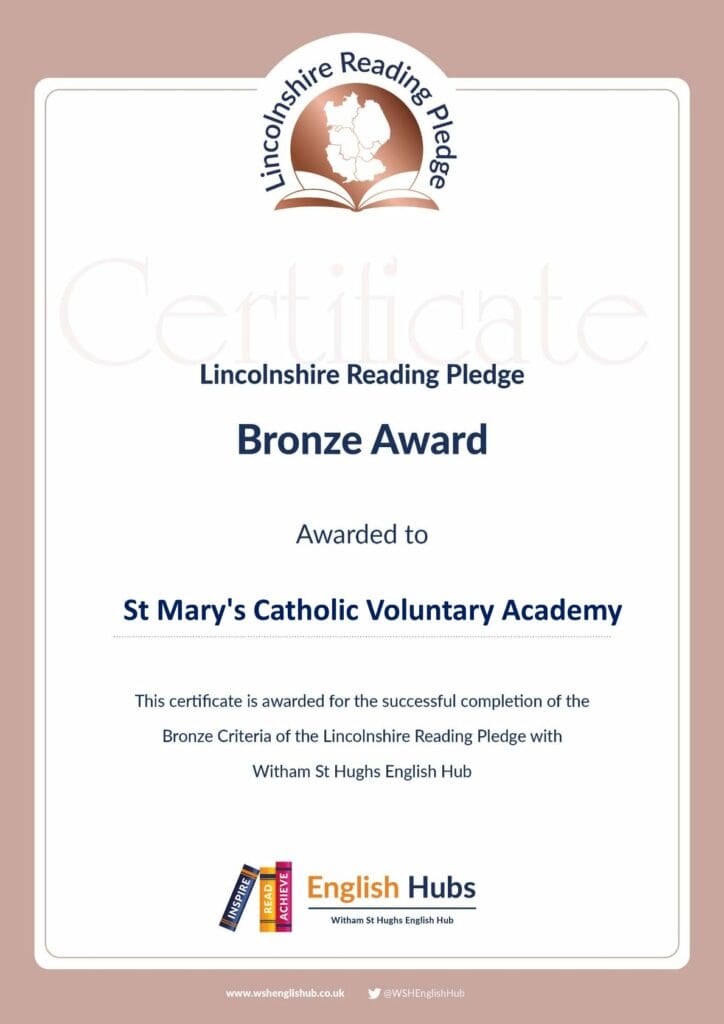 St Mary’s Catholic Voluntary School are proud to have received the Bronze Award in the Lincolnshire Reading Pledge.